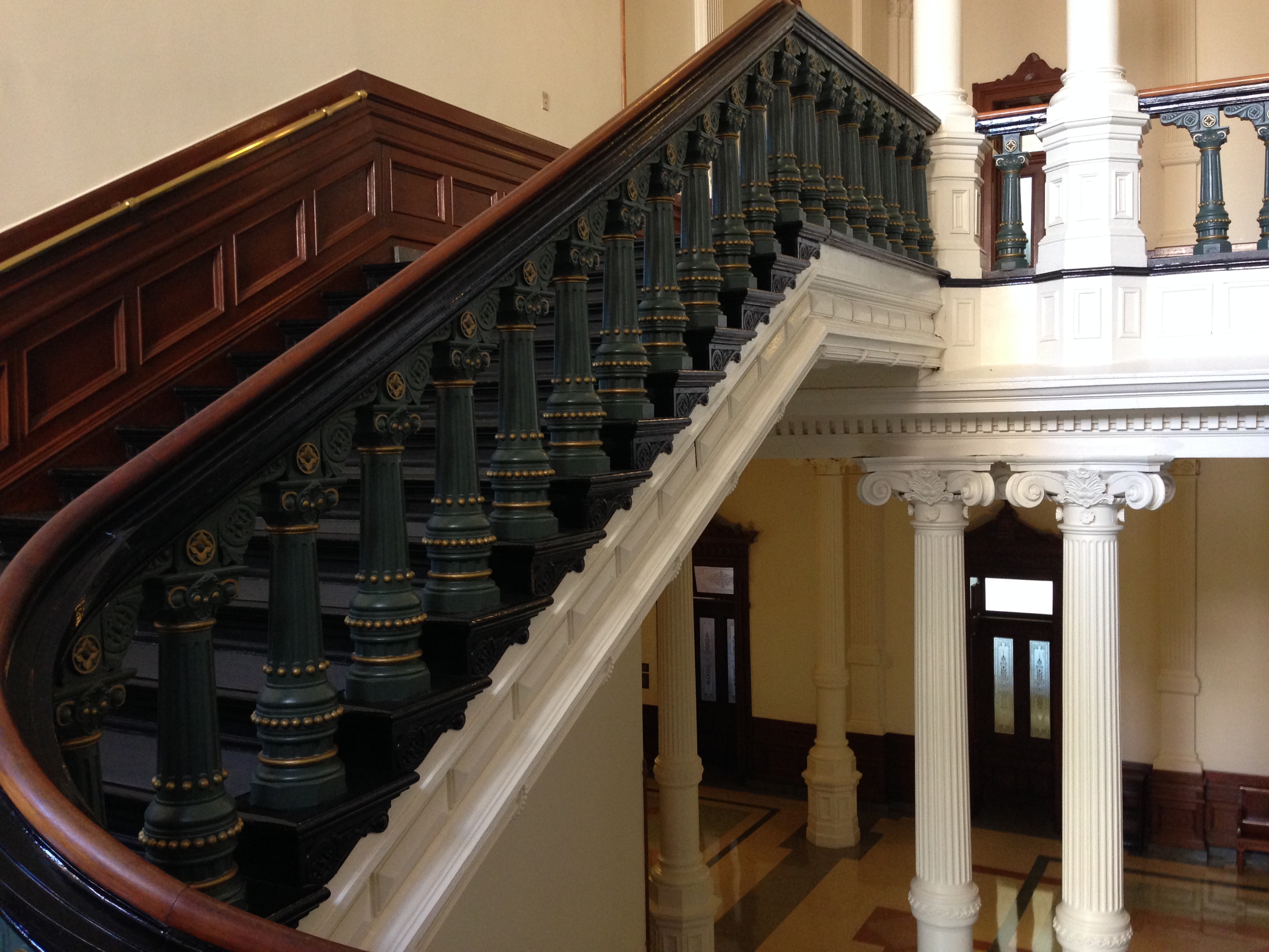 Attention to detail is seen throughout the interior of the capitol, especially these green cast iron stair cases.
