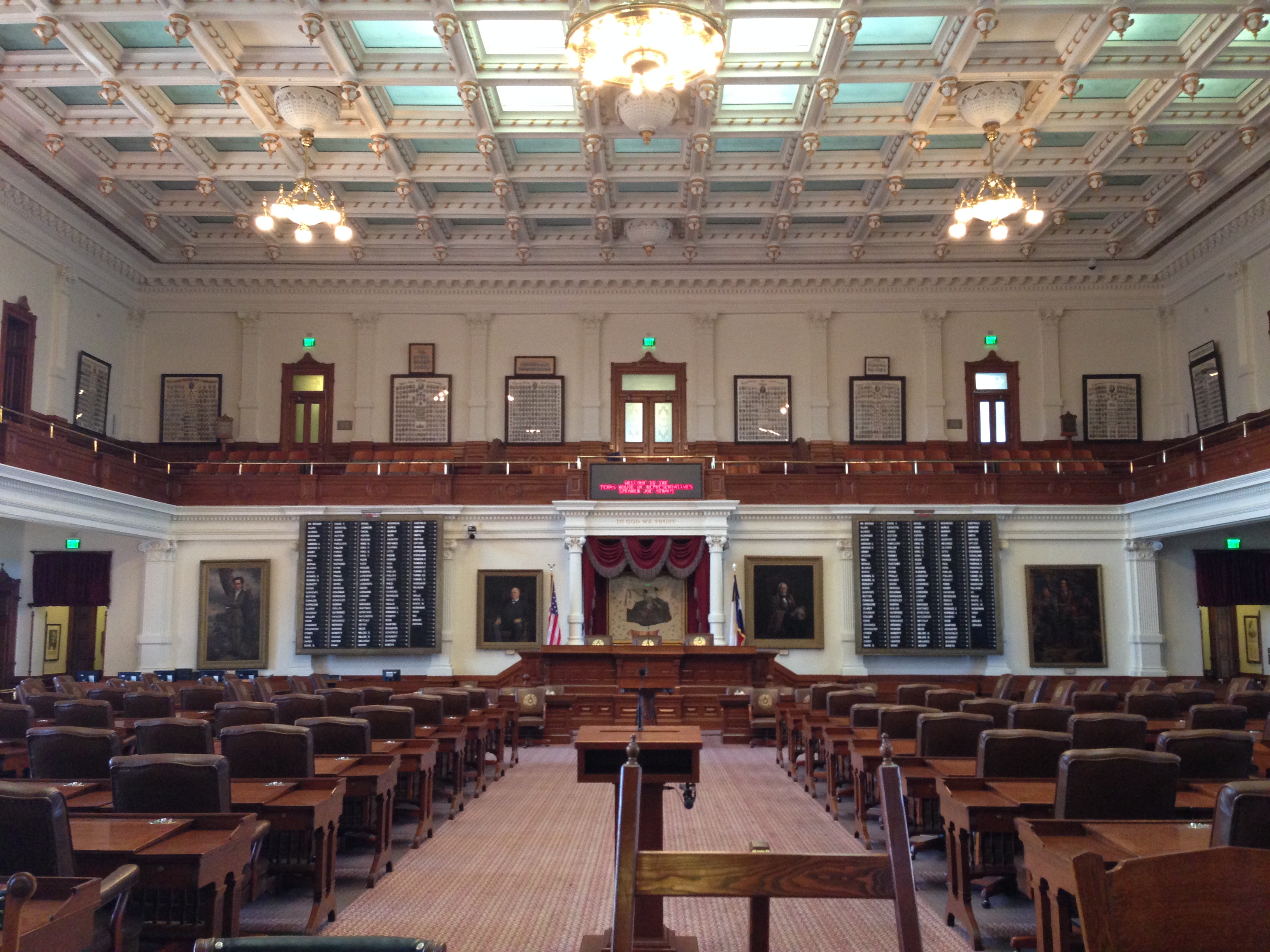 Portraits of the past Presidents of the Republic and Governors of the State of Texas line the wall.