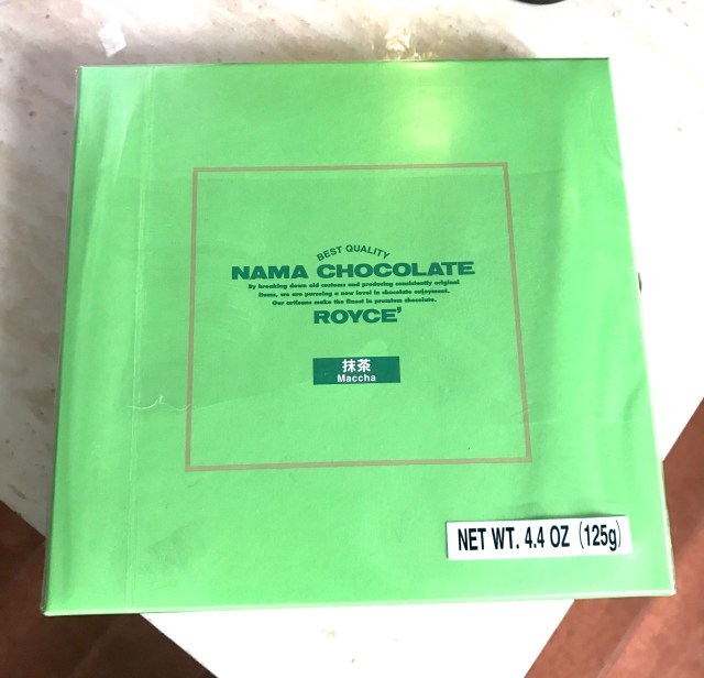 - Royce Nama Maccha Chocolate– There are a variety of flavors but this chocolate is very expensive so I only grabbed a box. I found these in a refrigerated section of the airport. The chocolates also come with its own ice bag to keep it cool during the flight. (The Japanese are very big on maintaining optimal temperature on everything). This chocolate was silky smooth.