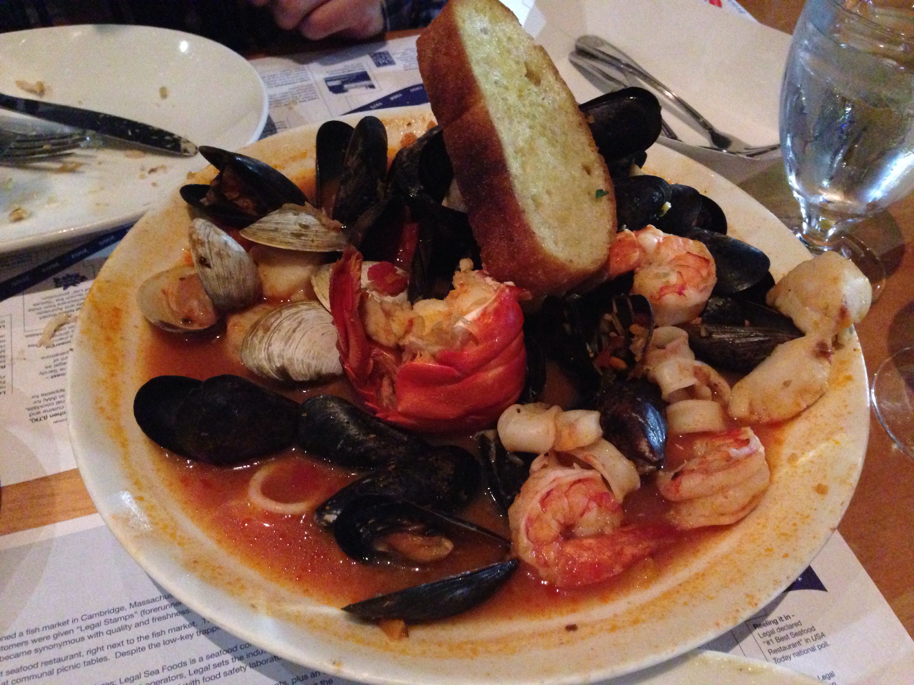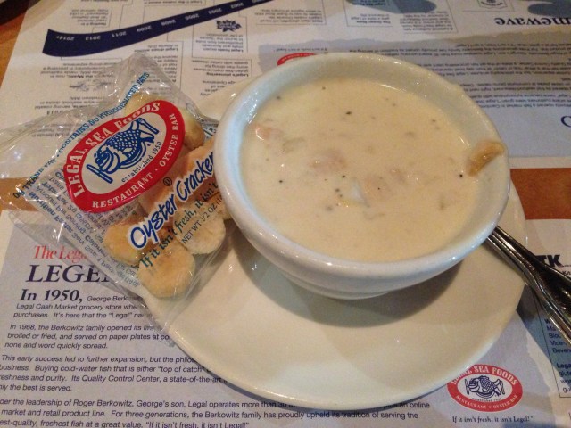 I landed in Boston in the evening, and after a five hour flight, I was starving. Luckily, around the corner from my hotel was Legal Sea Foods. This place first opened in Cambridge, Massachusetts as a low-key restaurant next to the Berkowitz family’s Legal Cash Market and fish market. Word quickly spread about its fresh and quality seafood. Now there have locations throughout the east coast and airports. Despite many locations, the place was packed. It was a 45 minute wait for a table. I walked around the block for a few minutes before heading to the bar to warm up with a glass of wine instead. Shortly afterwards, our table was ready.