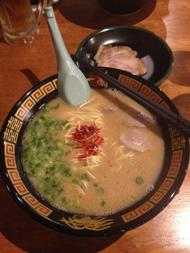 Like everything else in Japan, Ichiran is a chain restaurant. They specialize in ramen with tonkotsu broth. To order, buy your meal ticket at the vending machine. You have the option to add more pork, green onions or an egg for additional costs. Once you’ve purchased your meal ticket, the hosts will guide you to an open table. You have the option to sit at individual booth like eating area or at open tables. At the table, you fill out a form customizing your broth and noodle preferences. The broth was porky but not deep in flavor. The noodles were the perfect chewiness. One dislike was that they forgot our egg until I remembered at the end of meal. Overall, it was a satisfying bowl of ramen.